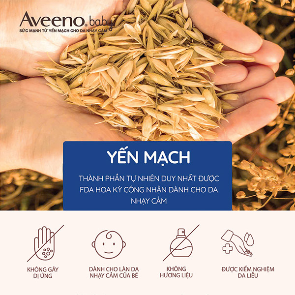 Sản phẩm được các mẹ tin dùng với thành phần gồm 3 phức hợp yến mạch – thành phần tự nhiên duy nhất được FDA Hoa Kỳ công nhận dành cho da nhạy cảm: