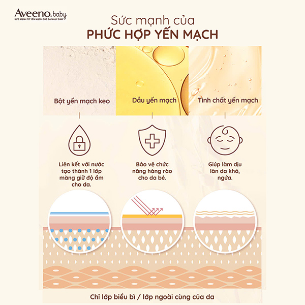 Thành phần này không chỉ cấp ẩm mà còn giúp khóa ẩm và ức chế sự hình thành cytokine – 1 thụ thể gây ngứa da trong quá trình viêm của cơ thể, để từ đó có thể làm dịu cơn khô ngứa nhanh chóng cho bé, tránh việc trẻ cào gãi làm tổn thương da thêm nữa. Mẹ có thể sử dụng kem dưỡng ẩm Aveeno Baby Soothing Relief giúp làm dịu da trong 20 giây với thành phần tinh chất yến mạch cùng bột yến mạch keo. Ngoài ra, bên cạnh còn có dầu yến mạch, giúp khóa ẩm da bé 24 giờ và nuôi khỏe hệ vi sinh trên da sau 14 ngày sử dụng, hạn chế đến 90% tình trạng da nhạy cảm bùng phát quay trở lại.